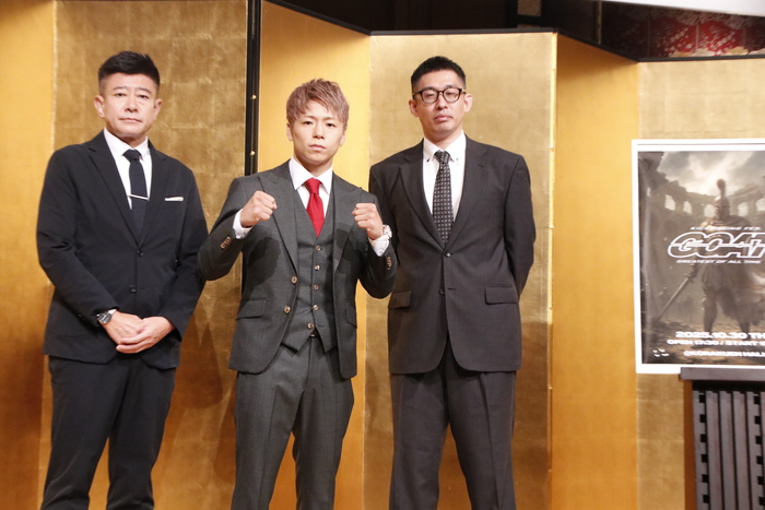 「これからどうなっていくのかもやってみてから」と、全ては今回の第1回大会をやってみてからだとした。なお、発表された3試合は那須川がRISEルール、龍聖がKNOCK OUT-BLACKルール、松倉がISKAルールとなっており、GOATのルールを設けるかもまだ決まっていないとのこと。