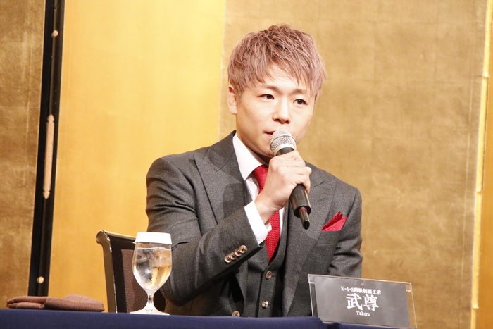 「今回、解説に指名していただきました武尊です。第1回目の大会ということで、呼んでもらえたのは凄く嬉しいし、僕も小さい頃から格闘技を地上波のテレビで見てきて、そこで格闘技っていうものを見つけて、そこから夢をもらって今の立場まで来れました。
