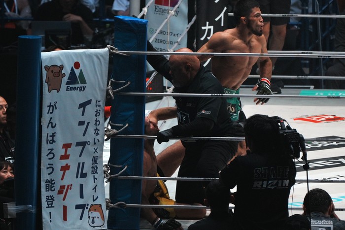 「良い、強い選手だと思います。ストレートをもろに被弾しました。それは本当に認めざるを得ません。ただ先ほどRIZINの事務局の方にも頼みましたけれども、なるべく早く戻ってきたいと思っています。ちょっと鼻血は出ていますが、骨折のような大きな怪我はしていませんのでできるだけ早く戻ってきたいと思っています」