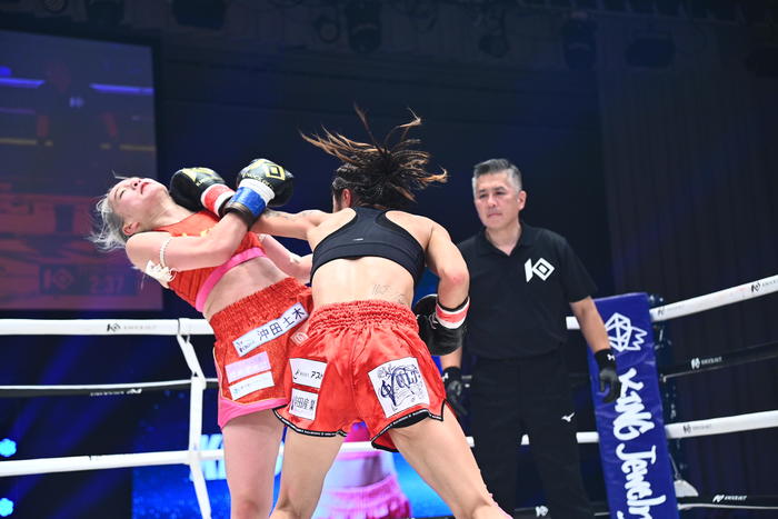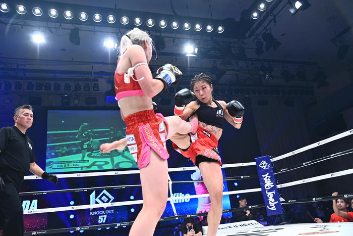 「3人のジャッジの見解に重要な点があって、『組み付きも多く延長も山田の勝ちにしました』というのがポイントだと思います。なぜなら、REDルールは組むことが認められているので組むこと自体に逃げという概念はないです。組んでヒザを蹴ったりヒジを打てば、近距離の攻防を嫌がって組むことが逃げには当たらない。ただBLACKルールは組まずに攻防を行いなさいと。組んでもワンキャッチワンアタックのみというルール上の規定があるため、Kiho選手の場合、組み付いた後の攻撃がなかったり、顔を背けてしまったという場面があり、これは明確な減点行為。攻防で負けているということになります。その部分を取らないといけない。