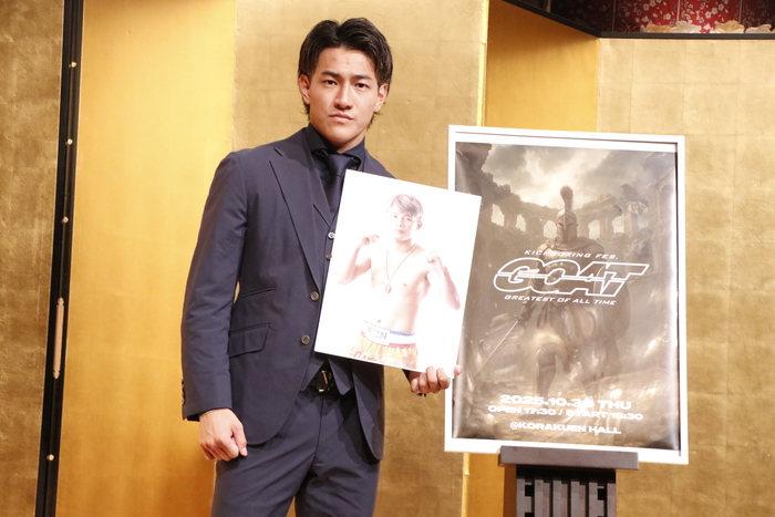 「今まで僕を知らない人とか、格闘技をそんなに知らない人も、パッと見ることがあると思うんですけれど。僕はずっと無敗で負けてなくて、自分より年下のヤツに2回も負けて、本当に今格闘技もそうだし、自分の人生の中でもいろいろ挫折している時期だと思うんですけれど、今ここにいて僕の試合で仕事している人、普通の方々はいろいろな挫折とかいろいろな苦しいことがあると思うんですけれど、僕も苦しいことと戦っているし、僕の試合を見て明日からちょっとでも頑張ろうかなとか、そう思ってもらえるような、そんなものをこのGOATで見せていきたいと思っています」