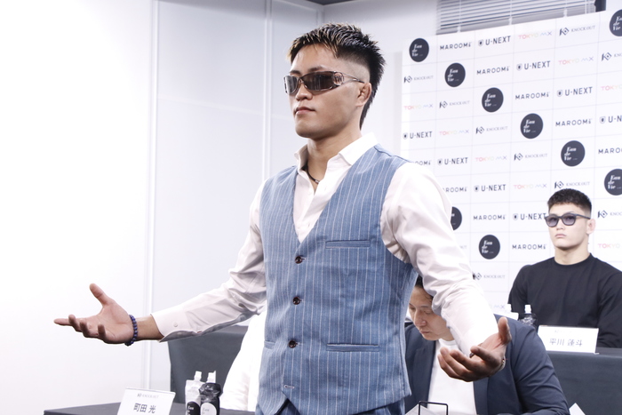 山口元気KNOCK OUT代表は「僕にも内緒で応募していた。祥梧が(同門対決は)嫌なんですけれどと言ってたんですが、(新田は)どうせ負けるので大丈夫だと言いました(笑)。どれだけ練習やってるかですね。キックボクシングの実績があっても勝てるものじゃないので。違う競技なのでそこを真剣にやれるかですね」と厳しい言葉。