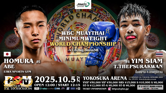 2025年10月5日(日)神奈川・横須賀アリーナ『Shimizu presents BOM OUROBOROS 2025』(U-NEXT配信)にて、WBCムエタイ世界ミニマム級(-47.62kg)王座決定戦に臨む同級6位・安部焰(エイワスポーツジム)のインタビューが主催者を通じて届いた。
