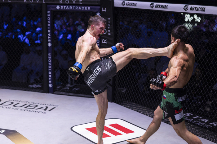 A respectful ending between Usman Nurmagomedov & Paul Hughes. WHAT A FIGHT!#RoadToDubai | LIVE NOW | Streaming on the ESPN App pic.twitter.com/O1tgrHAglp