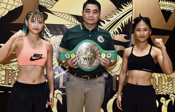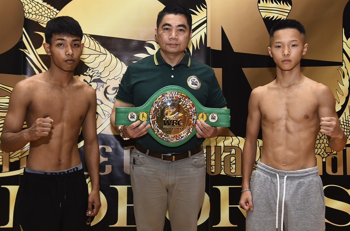 第5試合のWBCムエタイ世界ミニマム級(-47.62kg)王座決定戦で対戦する安部焰(エイワスポーツジム)は47.56kg、イムサイアム・トーテープスクワン(タイ)は47.70kgで計量をパス。
