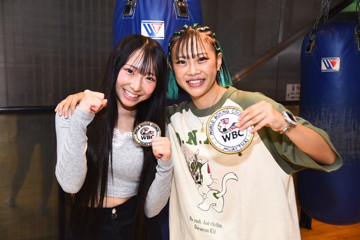 第6試合、WBCムエタイ世界ミニフライ級(-47.62kg)王座決定戦で対戦するカイケム・シットパナンチューン (タイ)は47.30kg、藤原乃愛(尚武会 フジワラムエタイジム)は47.06kgで計量パス。当初、この試合は2分5Rだったが、タイサイドの要望で3分5Rに変更となり、藤原は「いきなり変更になったのでビックリしましたが、望むところです。勝者には賞金100万円ということでプレッシャーもありますが、勝ったら美味しいです。バッチリ仕上げてきたので、倒す自信もあります。(100万円を取ったら)タイに行きます(笑)。相手とは5月のムエロークで一度会っているのですが、あの時よりも小さくなった印象を受けました。今回、地元での試合ということでたくさんのお客さんが来てくれるので、皆さんの心に残る試合をしたいです。WBCタイトルマッチは女子で私だけなので、女子でも面白い試合ができるところを見せたい」という。
