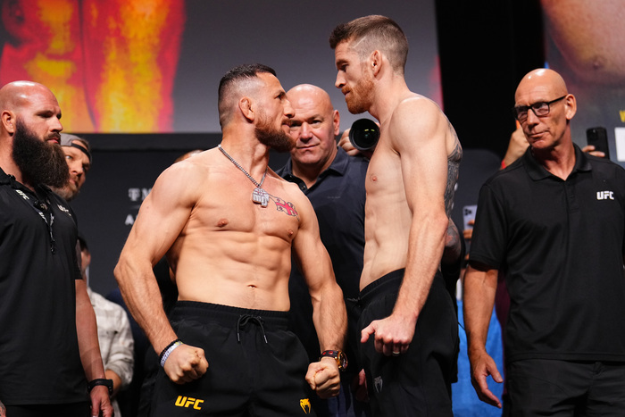 コ・メインイベントでは、「UFC世界バンタム級選手権試合」(5分5R)として、UFC13連勝中の王者メラブ・ドバリシビリ(ジョージア)に、柔術ストライカーのコーリー・サンドヘイゲン(米国)が挑戦。