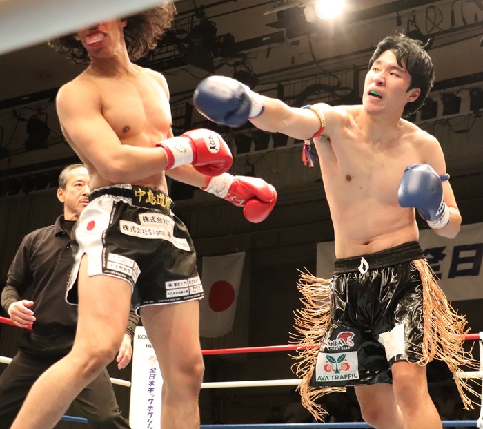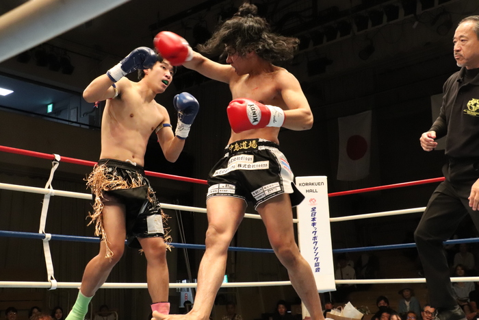 協会ホープの勇生が体調不良による欠場で、代打参戦となったドミニカ共和国テコンドー王者のジョカミから韓国のアイドゥルが2Rと3Rにはスタンディング・ダウンを奪って流血に追い込むが、最後までジョカミは立っていた。会場が最も沸いた熱戦。ジョカミの闘志に会場は惜しみない拍手を送っていた。