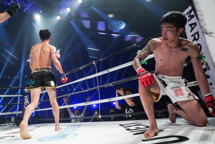 「というか…やっぱりパンチで倒すのって楽しいんですよ。盛り上がるし。あと試合が終わった後に痛くないので、次の日遊びに行けるっていう。蹴りまくっちゃうとあちこち痛くて、1週間は練習に参加できないですからね。でもやっぱり、勝ちを重ねるためには、僕はパンチに頼らない必要があるなと。それを会長とコーチにさんざん言われてたけど、それを改めて森岡選手に教えてもらったと思って、今は振り切って生きてます」