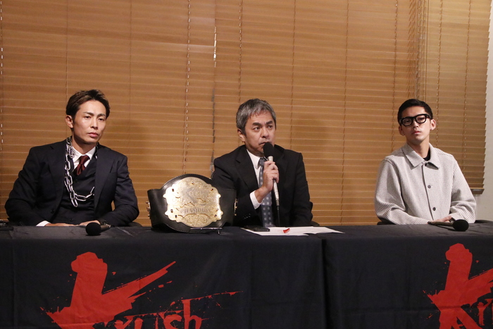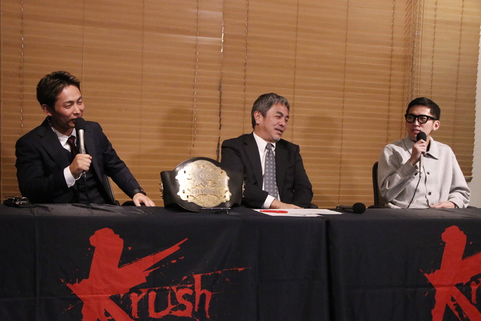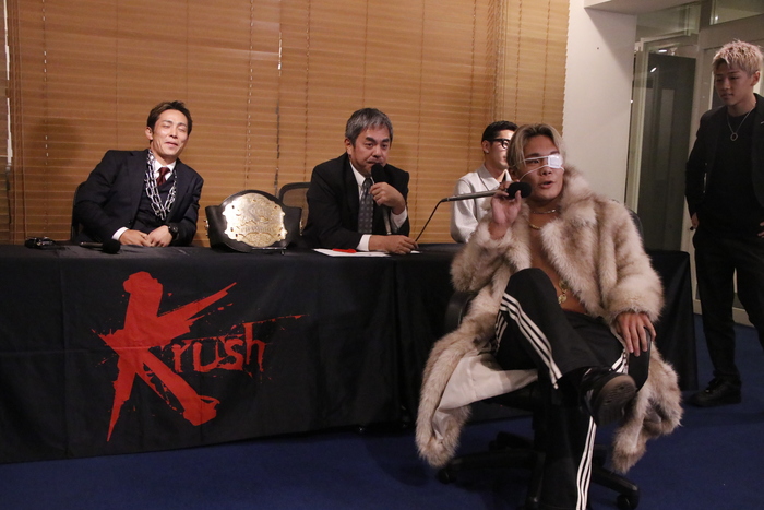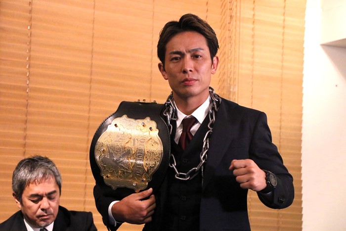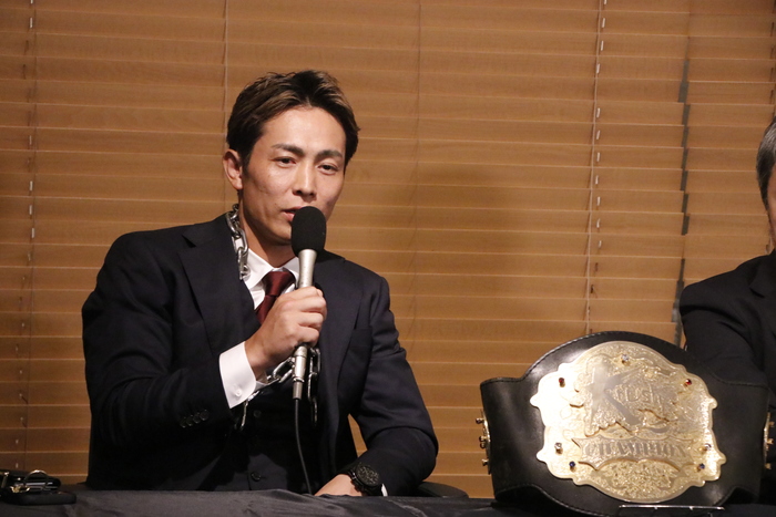 するとここで、児玉が会見に乱入。「おいおい、なんでこの2人でタイトルマッチやるんだよ、おかしいだろ。俺じゃなかったの? 次の挑戦者は絶対に俺でしょう」と、この試合の勝者とタイトルマッチをやらせろと要求。大岩、篠原とも言い合いとなったが、この後に会見を用意していると聞くと会見場を出ていった。