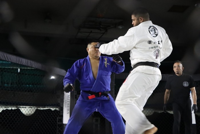 道衣MMA。ともにオーソドックス構え。ハシモトの左の蹴りに田馬場が組むが、出足払いのハシモトが崩してテイクダウン。道衣を掴んで押さえつけてパウンド。TKO勝ち。