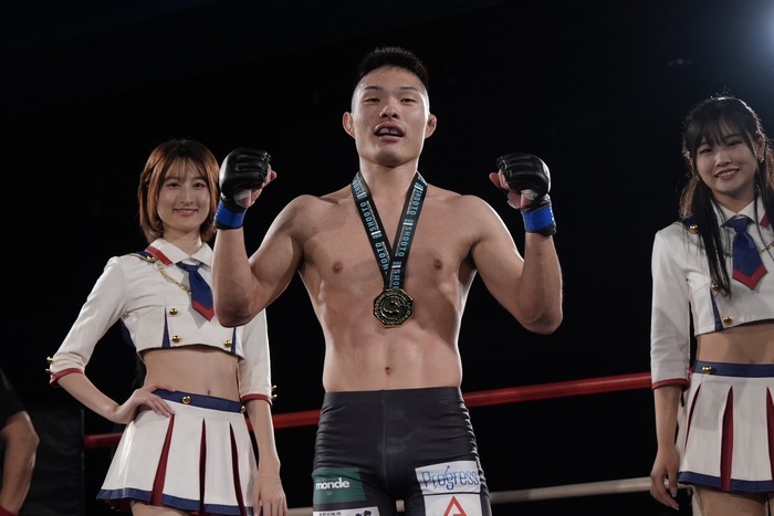 決勝では中島陸(総合格闘技ゴンズジム)と瀬戸口怜久(パラエストラ小岩)の勝者と対戦予定の福元は、「次、決勝も1Rでぜんぶ終わらせて僕が新人王獲るんで応援よろしくお願いします」と笑顔で語った。