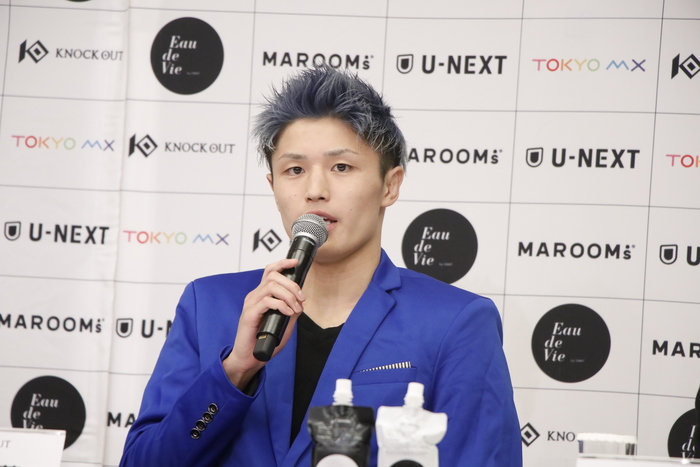 今大会のメインとセミは共にKNOCK OUT-REDルール(ヒジあり、首相撲などのつかみからの攻撃無制限、オープンフィンガーグローブ着用)のライト級。国内ではまだヒジ無しの方が人気があるが、どこを見て欲しいかとの質問に久井は「僕はルールがどうこうは気にしませんが、この階級が自分だけで盛り上がるような試合をしていけたらと思います」と、REDとBLACK問わずライト級の主役に自分がなっていきたいとする。