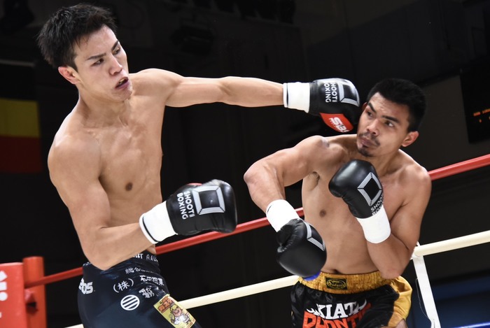 ジャブから追い詰めて左ボディ、さらに左ボディで畳みかける海人だがペットマイは組み付く。海人は右ストレートを放つがやはり組み付かれ、試合終了。判定3-0で海人が再起戦で勝利した。