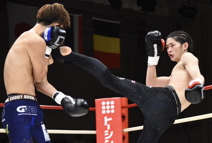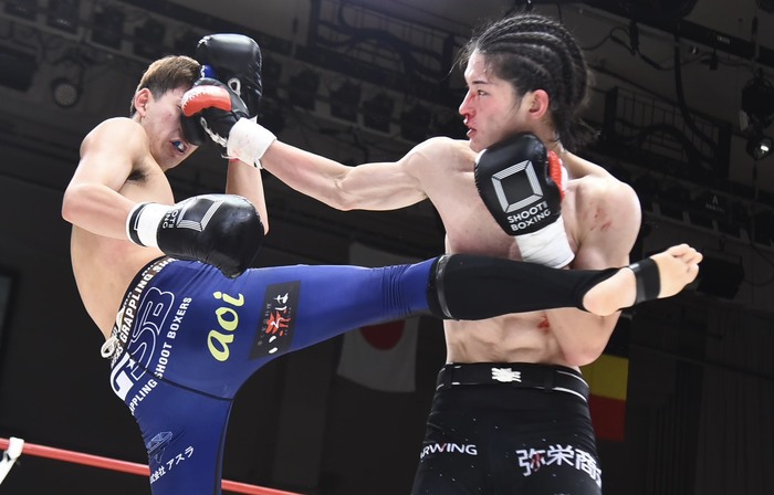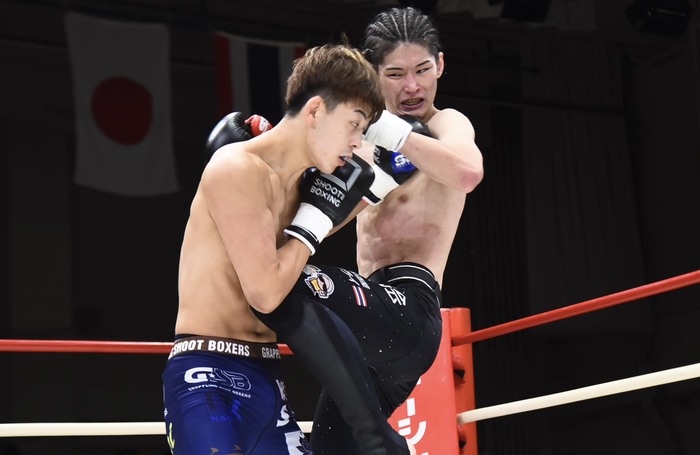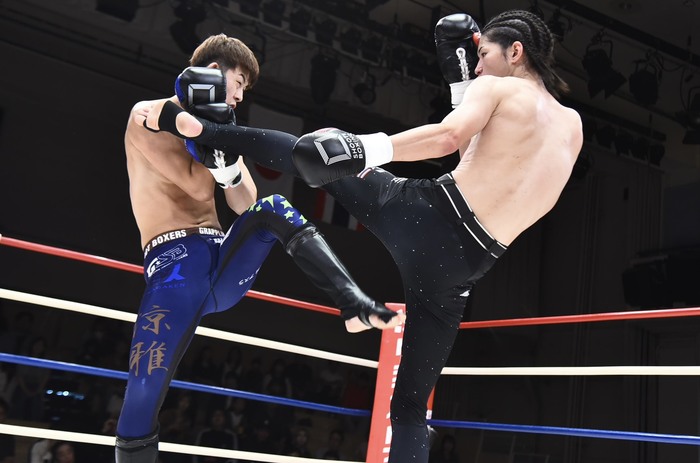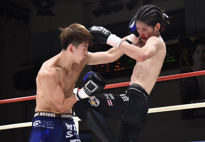 1R、下がって左ミドルを蹴るサウスポーの長谷川に土井が右フックを命中させ、ダウンに等しい場面を作る。前に出る土井を前蹴り、ヒザで迎え撃つ長谷川に土井は右ミドル。左ストレートと右フックをヒットさせた長谷川は左ストレートで追撃する。長谷川は左ミドルからの左ストレート、さらに右フック。劣勢になった土井だが再び前へ出て右ストレートを打つ。