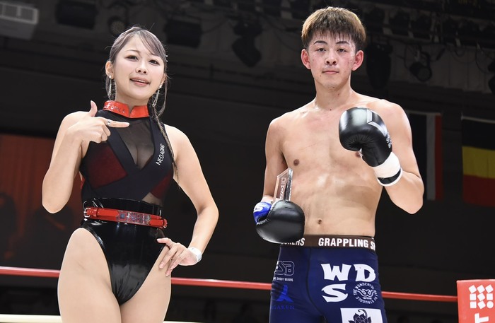 2R、前へ出る土井を左ミドルとヒザで迎え撃つ長谷川が、左ストレートを放ったところで土井は右フックを合わせる。土井は右ストレート、左フック、右ボディストレート。ジャブで距離をとる長谷川は左ミドル。