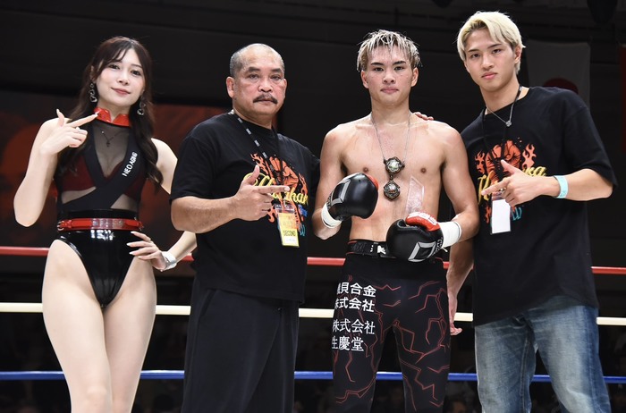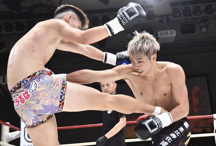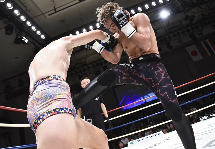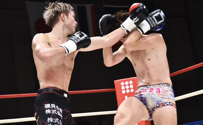 1R、中田は軽快なステップを踏み、強い右ロー、左ミドルを蹴って一気に打ち合いに持ち込む。笠原組んでのヒザ蹴り、左ボディで応戦。笠原の右フックに大きくグラついた中田へ、笠原は左ボディ。さらに右ストレートでグラつかせると、応戦しようとした中田に右ストレートを打ち込んでダウンを奪う。