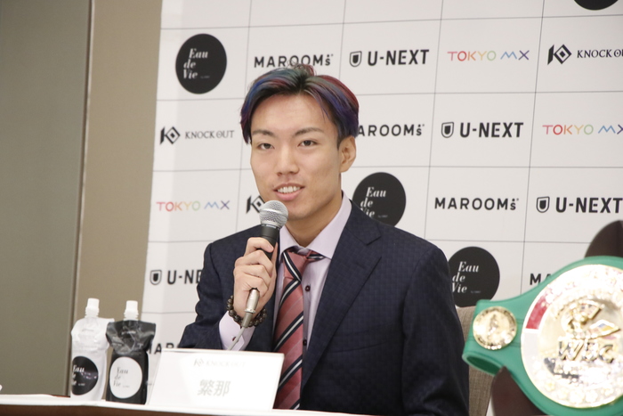 これに対して繁那は「僕も今でも10Rでも20Rでも戦える体力はあるので、めっちゃ楽しみです。ちなみに5Rのタイトルマッチをやったんですけれど、1Rで終わったのでフルラウンドの経験はないです」と、5Rフルに戦った経験はないがスタミナには自信があるとした。
