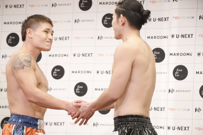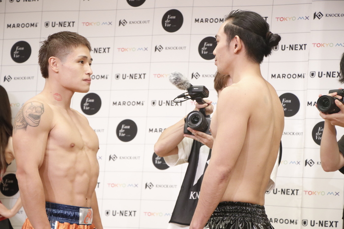 第7試合のスーパーファイトKNOCK OUT-BLACKウェルター級3分3R延長1Rで対戦する、中島玲(KNOCK OUT クロスポイント渋谷/ハイブリッドアカデミー)は67.5kg、小川悠太(誠真会館所沢道場)は67.45kgでそれぞれ計量をパス。