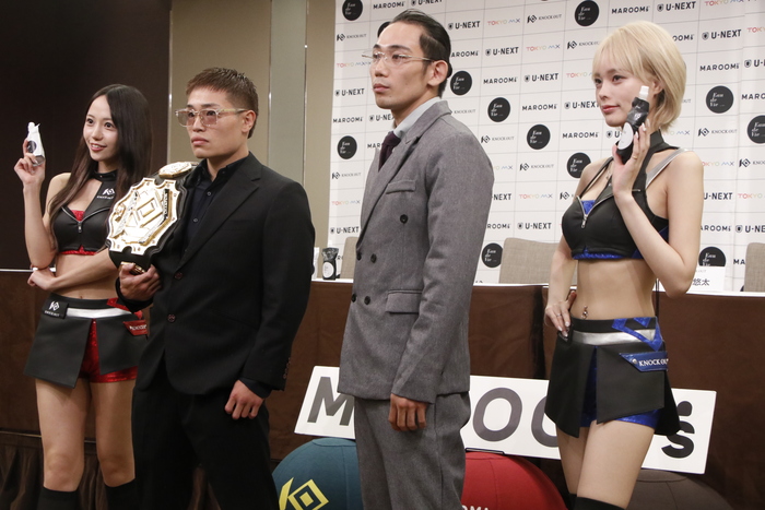 KNOCK OUT-BLACKウェルター級王者の中島は、4月のノンタイトル戦でユリアン・ポズドニアコフに敗れて以来の再起戦。会見では「明日は生まれ変わった俺を見せます」と宣言した。