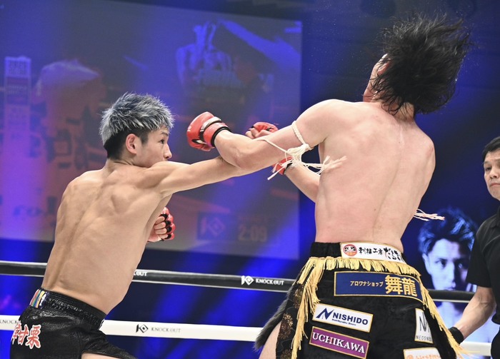 2R、久井はジャブ、古村の右をかわしてジャブを打つ。古村は左目が腫れ、ドクターチェックを受けた。再開後、左インカーフを蹴る久井はジャブからテンカオ。古村の右をかわして左ストレート、左インカーフを蹴る久井。左インカーフからの左ストレートをヒットさせる。