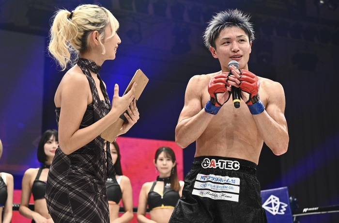 久井はマイクを持つと「前回ONEで試合をしたんですけれど計量前日に今回の試合が決まって。ONEで勝って古村選手に勝って、年末ゴンナパー選手に勝つって決めてました。年末、ゴンナパー選手と僕でタイトルマッチぜひお願いします。今、ゴンナパー選手がヒジありルールで無双していますが、僕は絶対に勝ちます。今の結果で自分がゴンナパー選手で文句ないと思うのでやらせてください。これからも倒して勝てるようにしますのでよろしくお願いします」と、笑顔で年末のゴンナパー戦をアピールした。