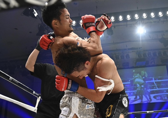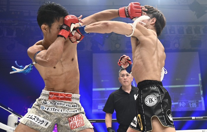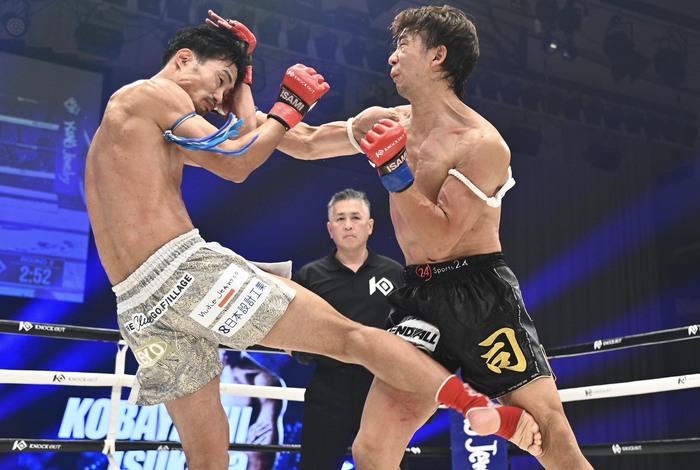 出合い頭の重森の右ストレートで小林はダウン。小林が勢いよく前へ出たところに重森が前蹴りを合わせ、これに身体を丸めた小林に重森は右ストレート、右ヒジ。最後は右フックで小林が倒れ、重森のKO勝ちとなった。