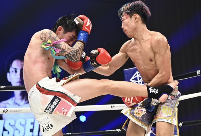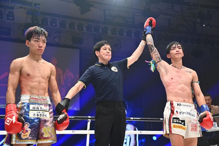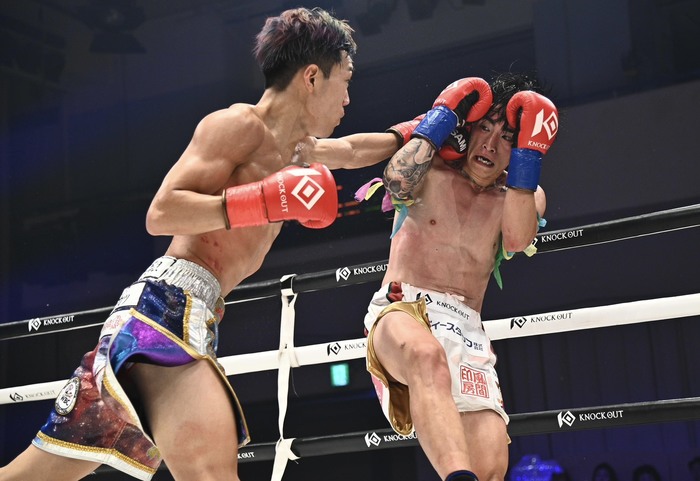 3R、壱は右ミドルを蹴り、すぐに離れると繁那の右フックに左フックを合わせに行く。位置の右ミドルと繁那の左フックが相打ち。左ミドル、左ローを蹴る壱に繁那はパンチを当てに行くが距離が遠い。