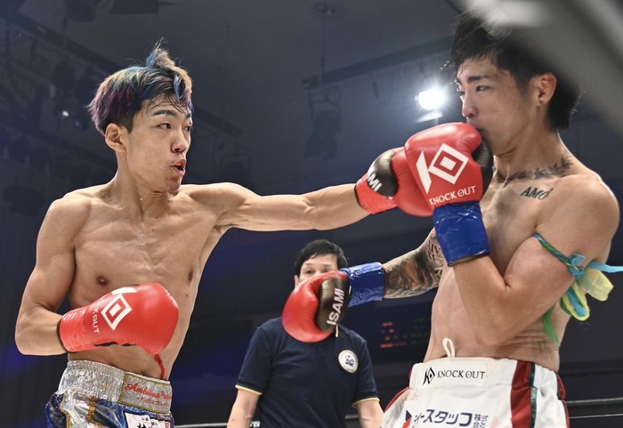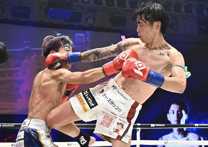 2R、壱の左ミドルをキャッチした繁那は左右のストレートを連打、壱もこれに応じる。繁那のジャブをヘッドスリップでかわしてジャブを合わせる壱。右ミドルをもらった繁那は左右フック、壱は下がって距離をとると繁那は左ストレート。壱も体勢を入れ替えて左ストレートを打つ。壱の左ストレートに繁那が左ストレートのカウンター、壱は組み付く。