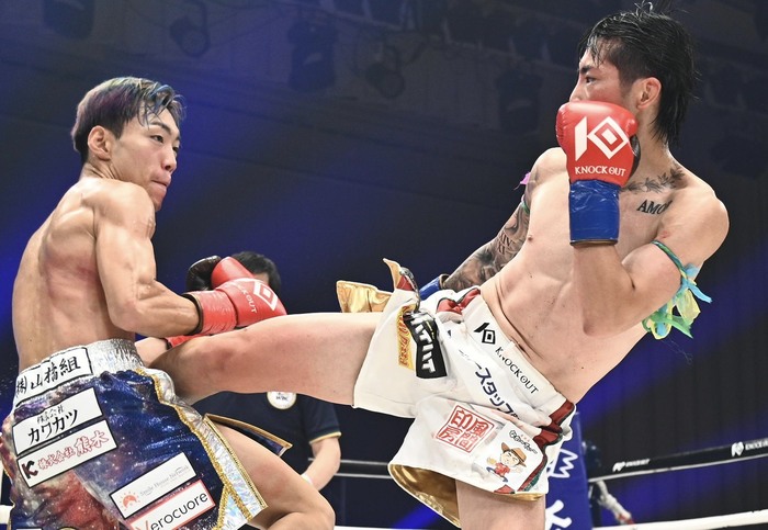 4R、壱の左ミドルをキャッチしての左ストレート、そのまま前へ出て打ち合いを挑む繁那だが壱は首相撲に持ち込んで攻撃を遮断する。壱は左ミドル、前蹴り。壱は左ミドルをキャッチさせての左フックを狙うが、繁那もこれは読んでいた。細かくパンチをまとめる繁那に壱は横蹴り。壱は流し気味にラウンドを終えた。