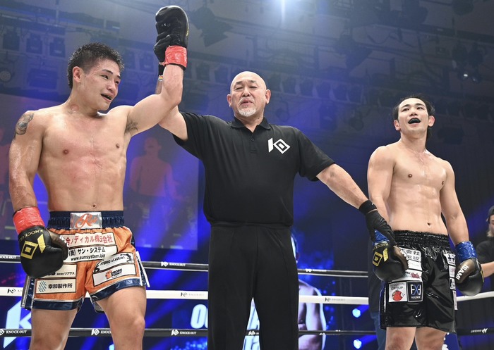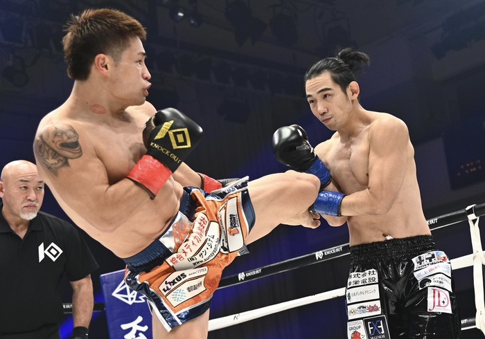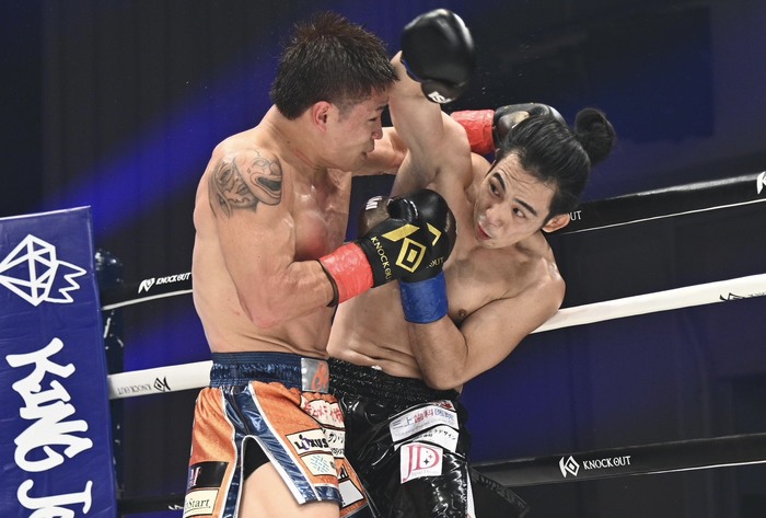 中島は左ボディからの右フック、さらに胴廻し回転蹴り。小川の左右フックに左右フックを返すが、小川も左右フック。小川が胴廻し回転蹴りを放つと中島も胴廻し回転蹴り。最後は両者リング中央で足を止めての打ち合いで盛り上げた。