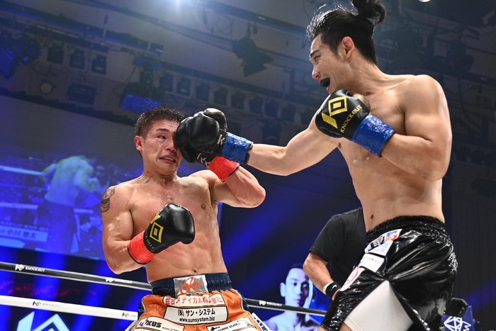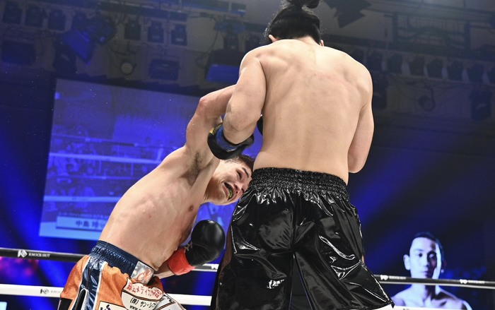 2R、中島は右カーフを蹴っていき、ジャブを打つ。小川も強打を返してくるが中島は左ボディ。ジャブを突く小川に中島が右カーフを蹴ると小川はバランスを崩す。中島の左ボディ、右フック。もう一度右フック。しかし小川は表情一つ変えずジャブを打つ。中島が左ボディ、右カーフ、右フック。小川も右フック。小川が飛びヒザを放つと、着地を狙って中島が左フック。両者笑みを交わす。