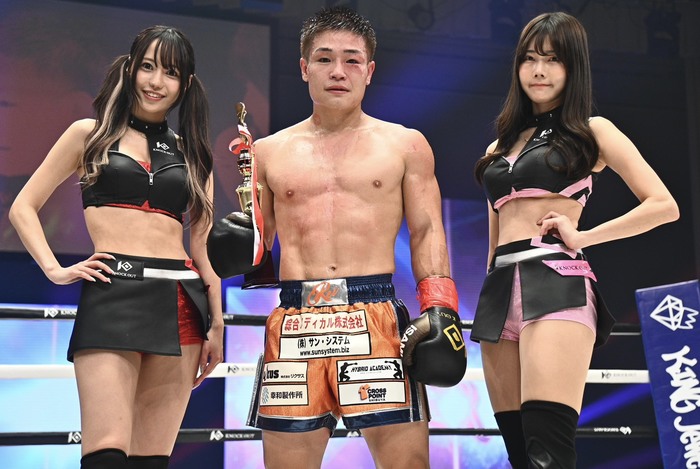 その中で、メインイベントのKNOCK OUT-REDライト級3分3R延長1Rで古村匡平(FURUMURA-GYM)に先制のダウンを奪われるも、逆転KO勝ちに成功した久井大夢(TEAM TAIMU)をKNOCK OUT-REDライト級王者ゴンナパー・ウィラサクレック(タイ/ウィラサクレックフェアテックスジム)の次期挑戦者にすることを明言。