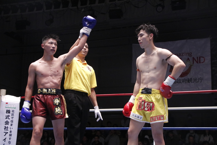 3R、赤土はパンチを多用し、右ローからの左縦ヒジも。ローとパンチで攻める赤土に荒谷もヒジとフックを繰り出すが、前へ出る赤土がコーナーへ詰めてパンチを見舞い優勢。判定3-0で赤土の勝利となった。