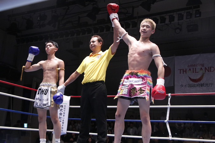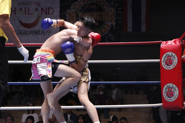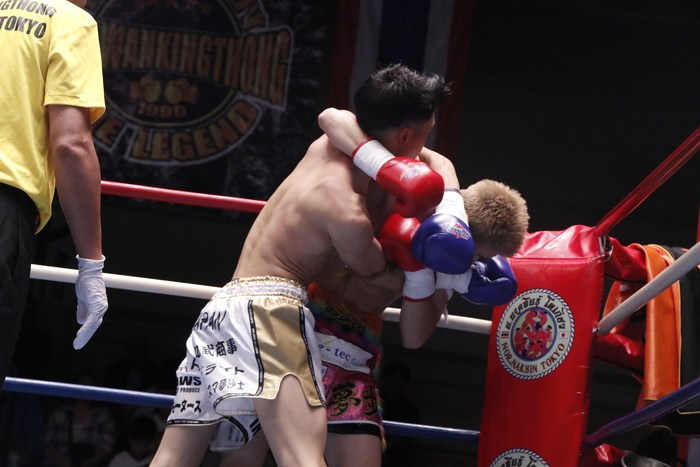 3Rは翔夢がパンチで前へ出ていく。山下は組んでのヒザと、コカしを3度成功させる。前蹴りとパンチで前へ出る翔夢だったがそのたびに首相撲に捕まり、判定3-0で山下の勝利となった。