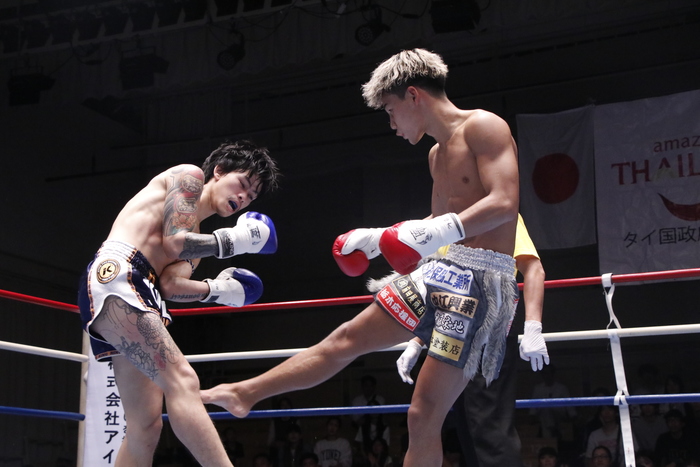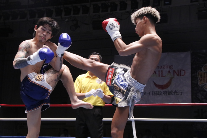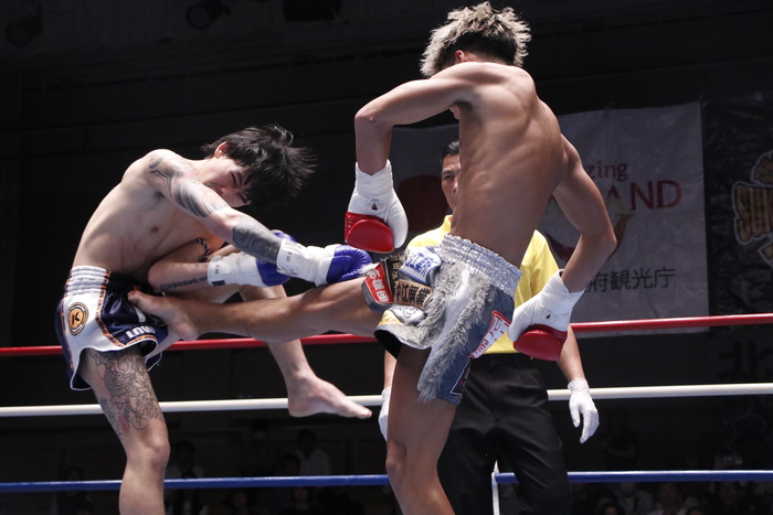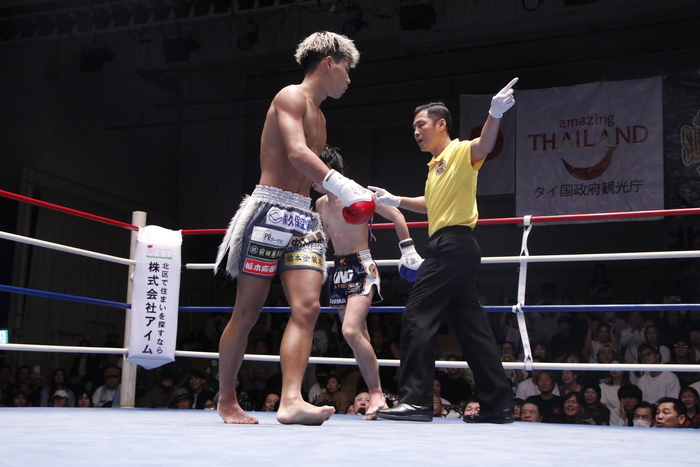 そこからは星の独壇場。ボディとローを交互に攻めて、顔面にもパンチを見舞う。ローマは思い切りヒジを振って逆転を狙うが空振り。最後は星の右ローが決まり、ローマが崩れたところでレフェリーがダウンを宣告し、そのまま試合終了となった。