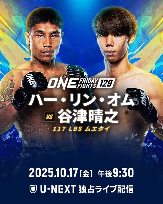 2025年10月17日(金)タイ・ルンピニースタジアム『ONE Friday Fights 129』(U-NEXT配信)にNJKFバンタム級4位・谷津晴之(新興ムエタイジム)の出場が決定した。今週は日本人選手の出場は1名のみ。