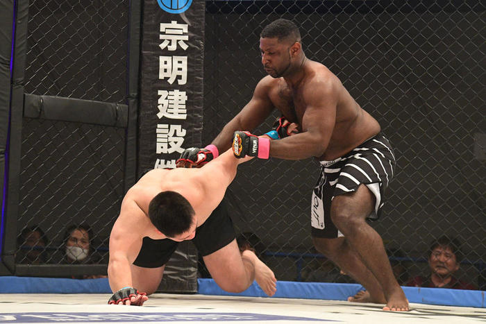 「公募」とされていた、赤沢の1年半ぶりのMMA復帰戦の相手は、元アメリカ空軍のGutsことチャールズ・プレテ。米国でアマチュアKOTCで勝利後、日本ではアマチュアNEXUSに参戦。2023年にプロMMAデビューし、田馬場貴裕、山本拓海、野畠大資をいずれも1R 1分以内にTKOに下している。