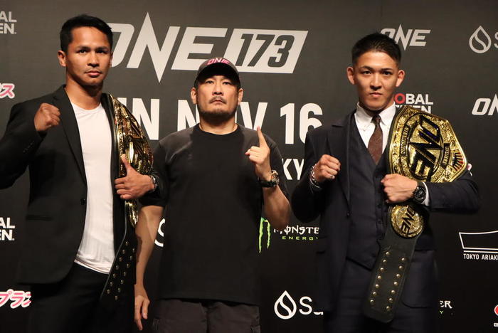 武尊は「スーパーボン選手を倒したら正真正銘、世界最強を証明できるので感慨深いっていうか。正明とはK-1からずっと一緒にやってきてONEへ来て2連敗して。本当に辛い時期を近くで見ているので前回獲った時も鳥肌が立ったんですけれど、次獲ってONEの頂点に立った時にはまた声が枯れちゃいそうですね(笑)」と、盟友・野杁の王座統一に期待をかける。