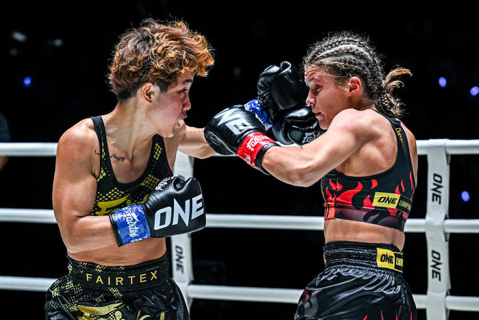 対戦するスタンプはONEを象徴するスーパースターの一人で「キックボクシング、ムエタイ、MMAで全部チャンピオンになっている選手はONEで彼女1人だけしかいない。勝負強さとか思いっきりのよさが凄くあって、アウトボクシングも出来て至近距離も打ち合いも出来るので、頭のいい選手だなって感じますね」と、あらゆる面で優れていると評価した。