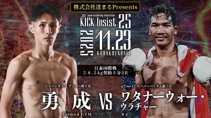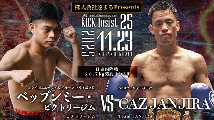 2025年11月23日(日)東京・後楽園ホールで開催されるジャパンキックボクシング協会主催『KICK Insist25』の対戦カードが発表された。今大会では日本vs.タイの6対6マッチが行われる。