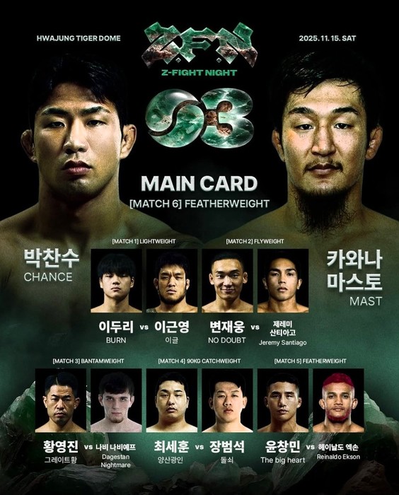 2025年11月15日(土)、韓国・高麗大学校 ファジョンタイガードームで開催される『ZFN 03』に河名マスト(ロータス世田谷)が参戦。Double GFCフェザー&ライト級王者のパク・チャンス(韓国)と対戦することが発表された。
