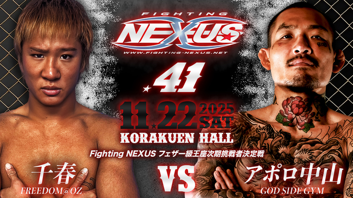 2025年11月22日(土)東京・後楽園ホールで『Fighting NEXUS vol.41』の開催が決定。「フェザー級タイトルマッチ」として、王者・横山武司(Swells柔術ジム/セラビー)vs.挑戦者・須藤拓真(X-TREME EBINA)が発表された。