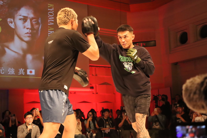 最後に萩原は「自信たっぷりなので、あと残り少ししっかり準備して、過去最高の状態に仕上げて思い切りぶん殴ろうと思います」、秋元は「覚悟も決まっているし、調子もめちゃくちゃいいので、必ず勝つのでリアルタイムで見てください」と、共に必勝を誓った。