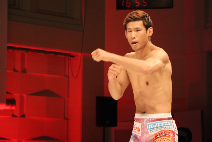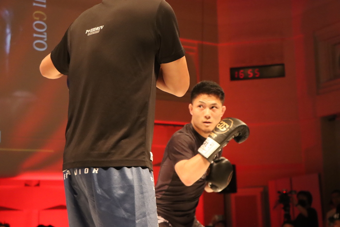後藤は、坐禅を組んで瞑想するという独特すぎる公開練習。そのまま1分半を終えるかと思いきや、グローブを着けてのドラムミットを残り30秒で始め、フォームを確かめるようにスローな動きから左右フック、左アッパーを打ち込んだがすぐに終了。中島は軽快なフットワークで動きながらのシャドーを見せた。