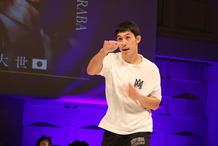 道衣姿で現れた桜庭は、投げの打ち込みで小内刈、大外刈を見せると、バービー・ジャンプをやってから再び打ち込みで背負い投げ。パトリックは舞台を大きく使う軽快なステップでのシャドーボクシングを見せた。