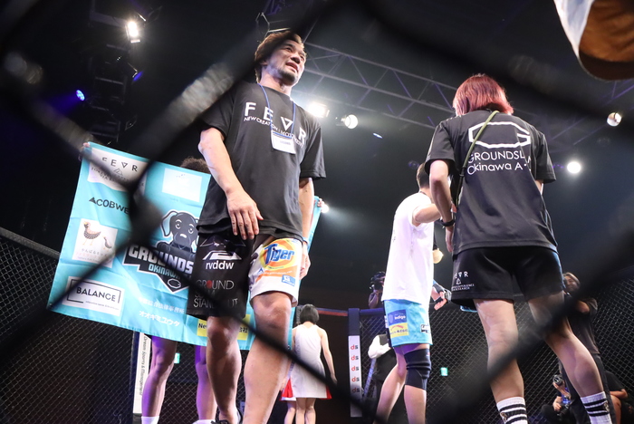 1R、サウスポー構えの小生は左から組んでケージに押し込み、入れ変えようと輝龍に首相撲ヒジ・ヒザ。腹にヒザを効かせて輝龍がダウン、パウンドでレフェリーが間に入った。小生は「ずっと勝ててなくてそれでも応援し続けてもらって自分は幸せです」と語り、勝村、妻とハグをかわした。