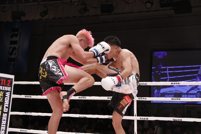 しかし3R、GUMPはヒザをボディに突き刺して対抗。ハイキックも狙う。常陸は強烈な左ボディ、右フックでGUMPを追い込むが、GUMPも前蹴りやヒザで応戦。最後は打ち合いとなり、互いにパンチを当てて終了。