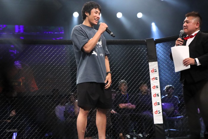 15日のカード発表時に「次戦決定!! 勝って上に行く」とだけ記していた平良は、地元・沖縄のケージに上がると、「ほんとうに2位の選手とやれるということですごく嬉しくて、これを勝って来年ベルトを獲るために頑張ります」と意気込み。