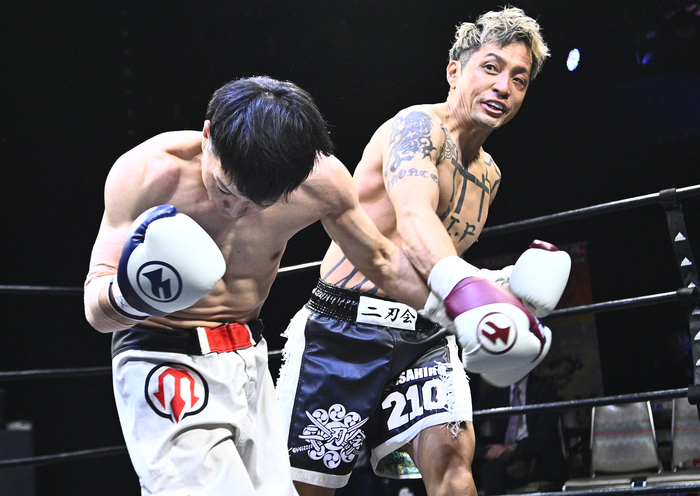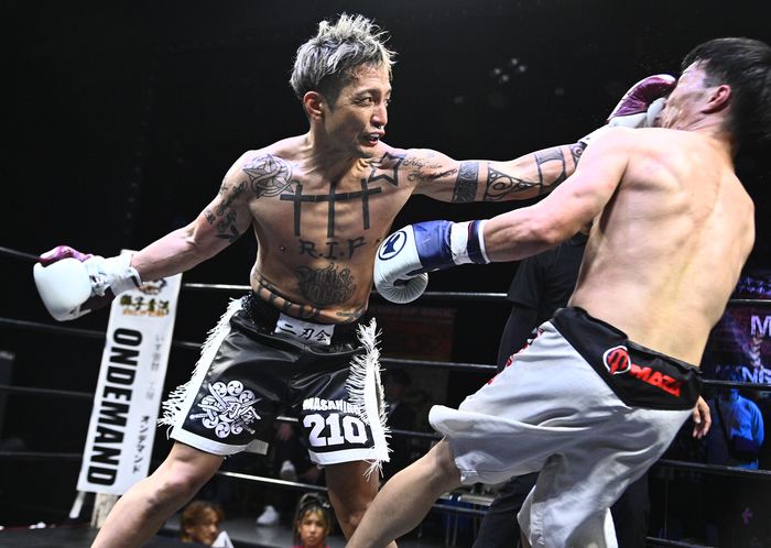 1R、変則的な動きのそれからぼうがうちに、藤川は右ロー、右ストレートが徐々にヒット。最後まで手数の落ちない藤川が判定勝ちし、今大会を締めた。